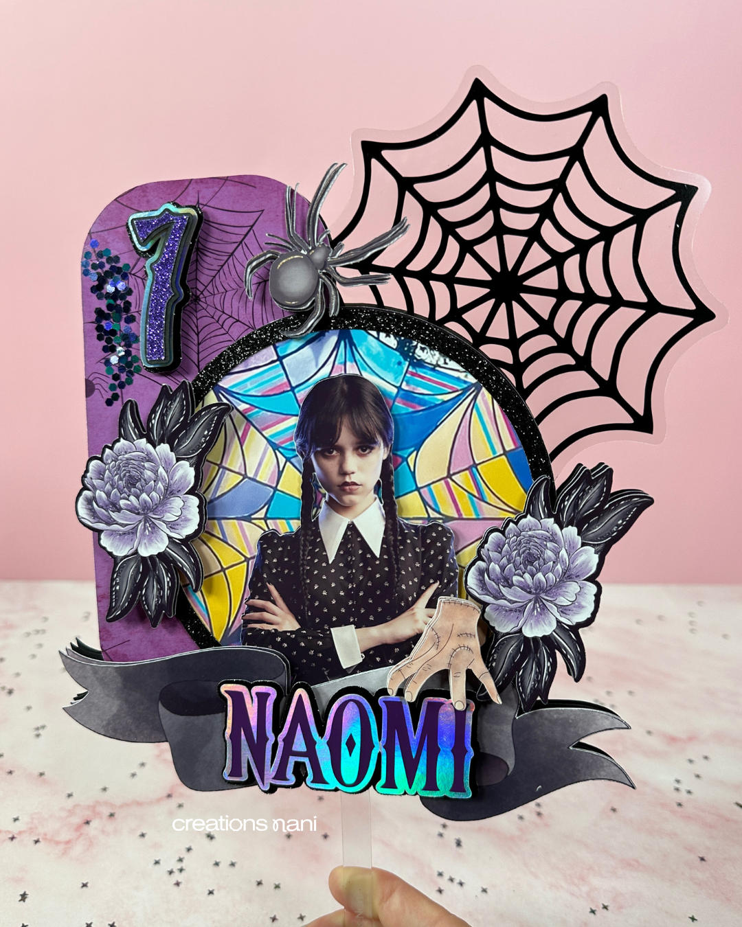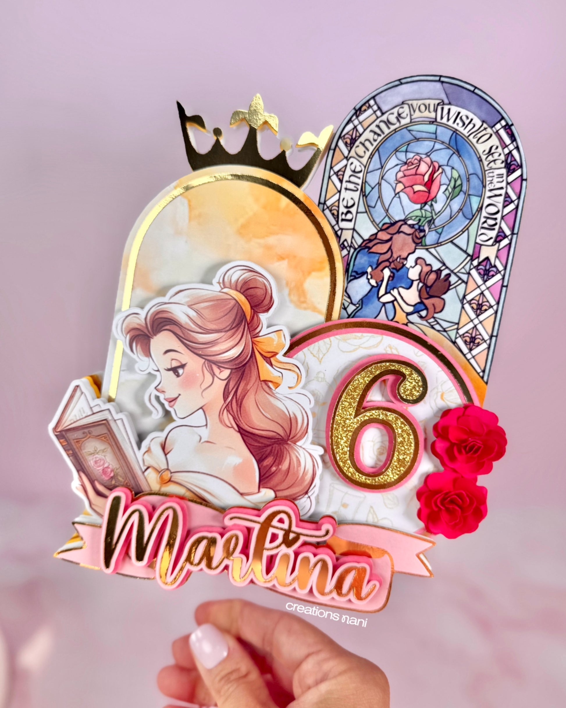 This fancy and elegant cake topper brings life and style to any cake! It features three panels: one for the character, one for the age, and one for the name. The elements are slightly larger and include layered details for a stunning, dimensional look. A favorite choice of Creations Nani this topper is perfect for making your celebration extra special. Made with care in Texas by Creations Nani.