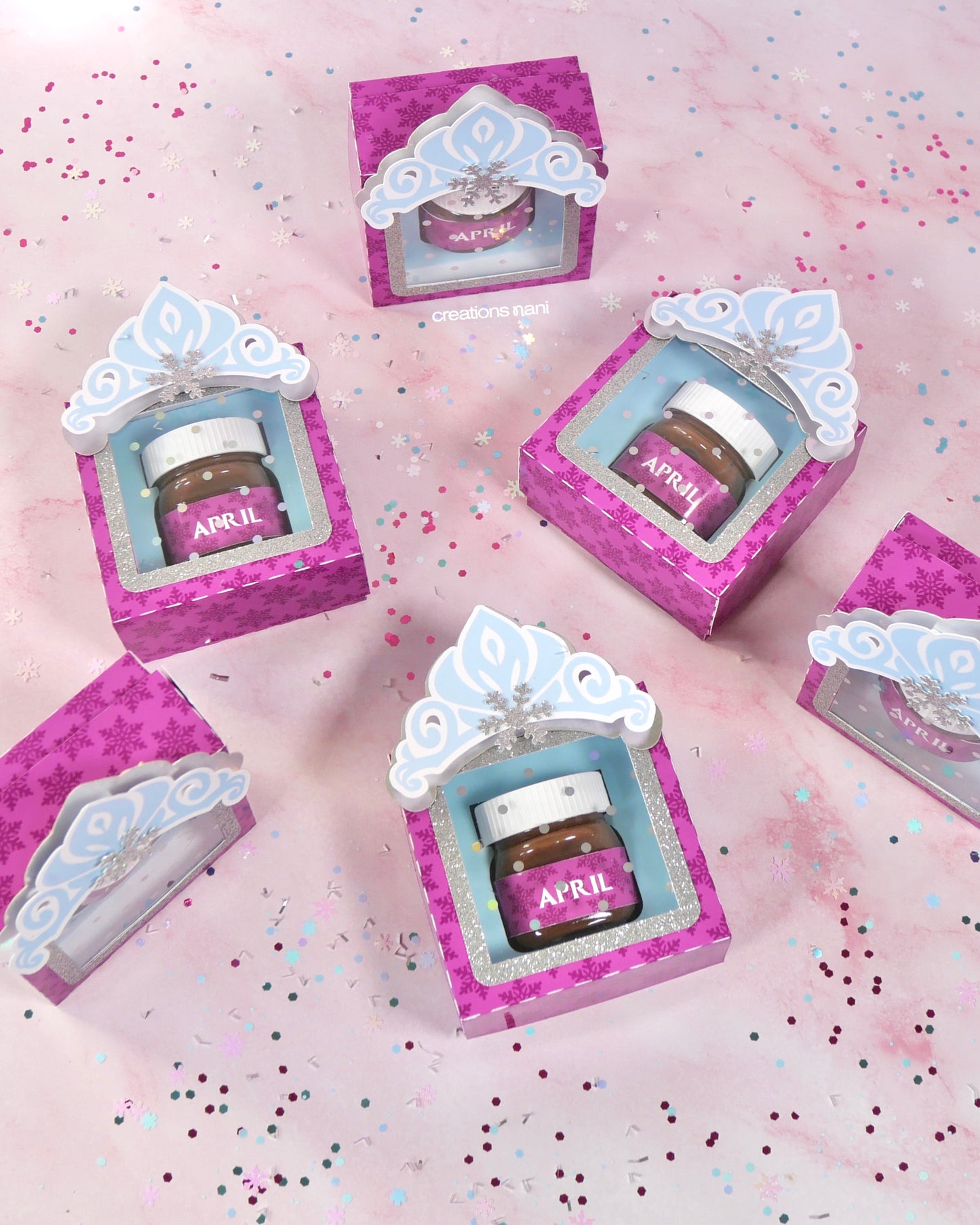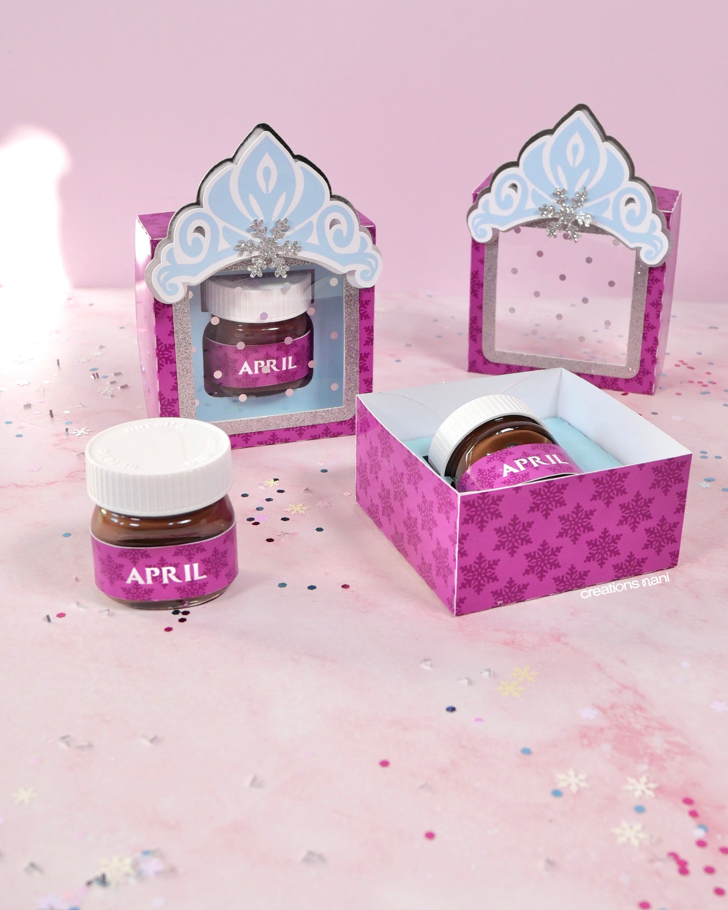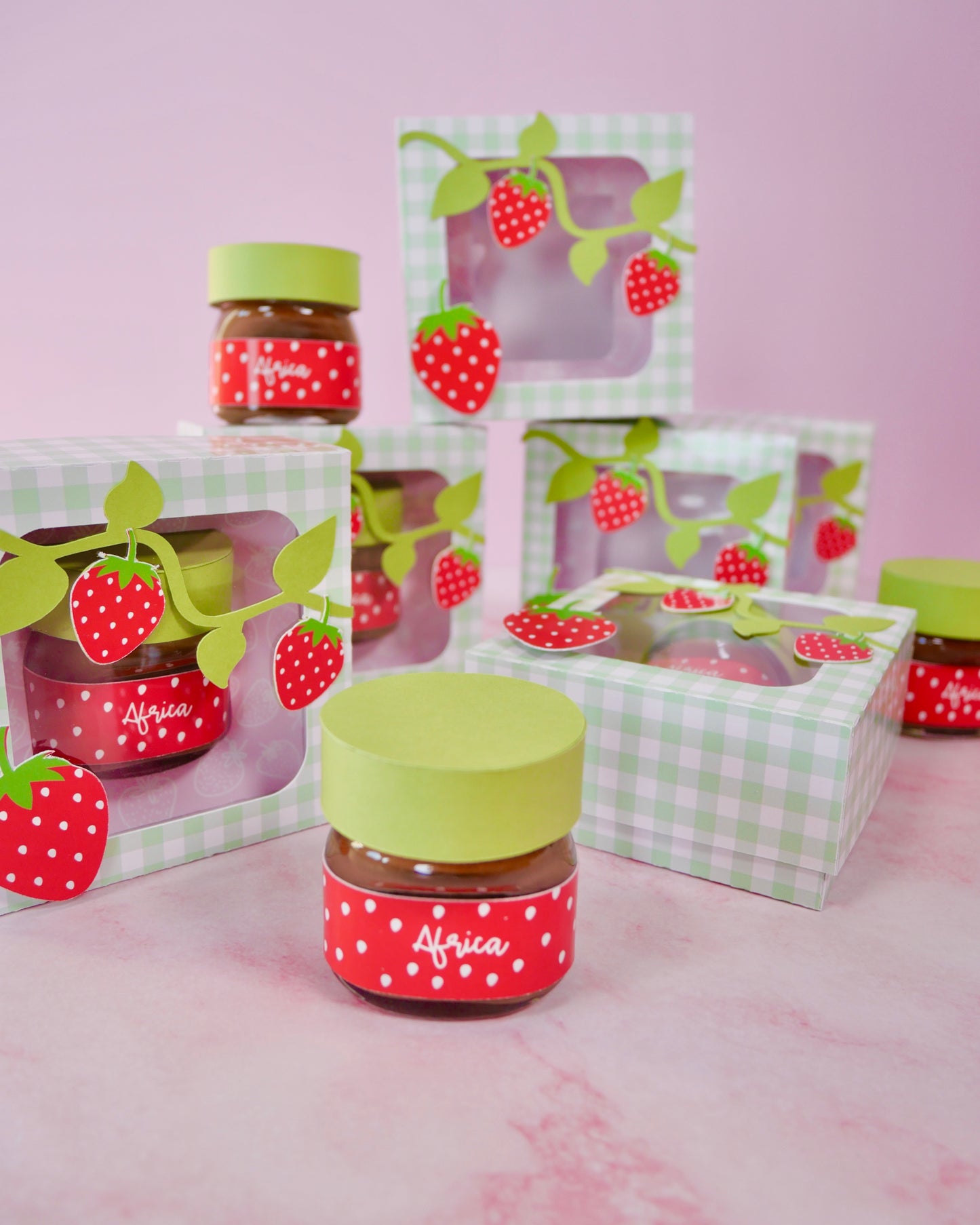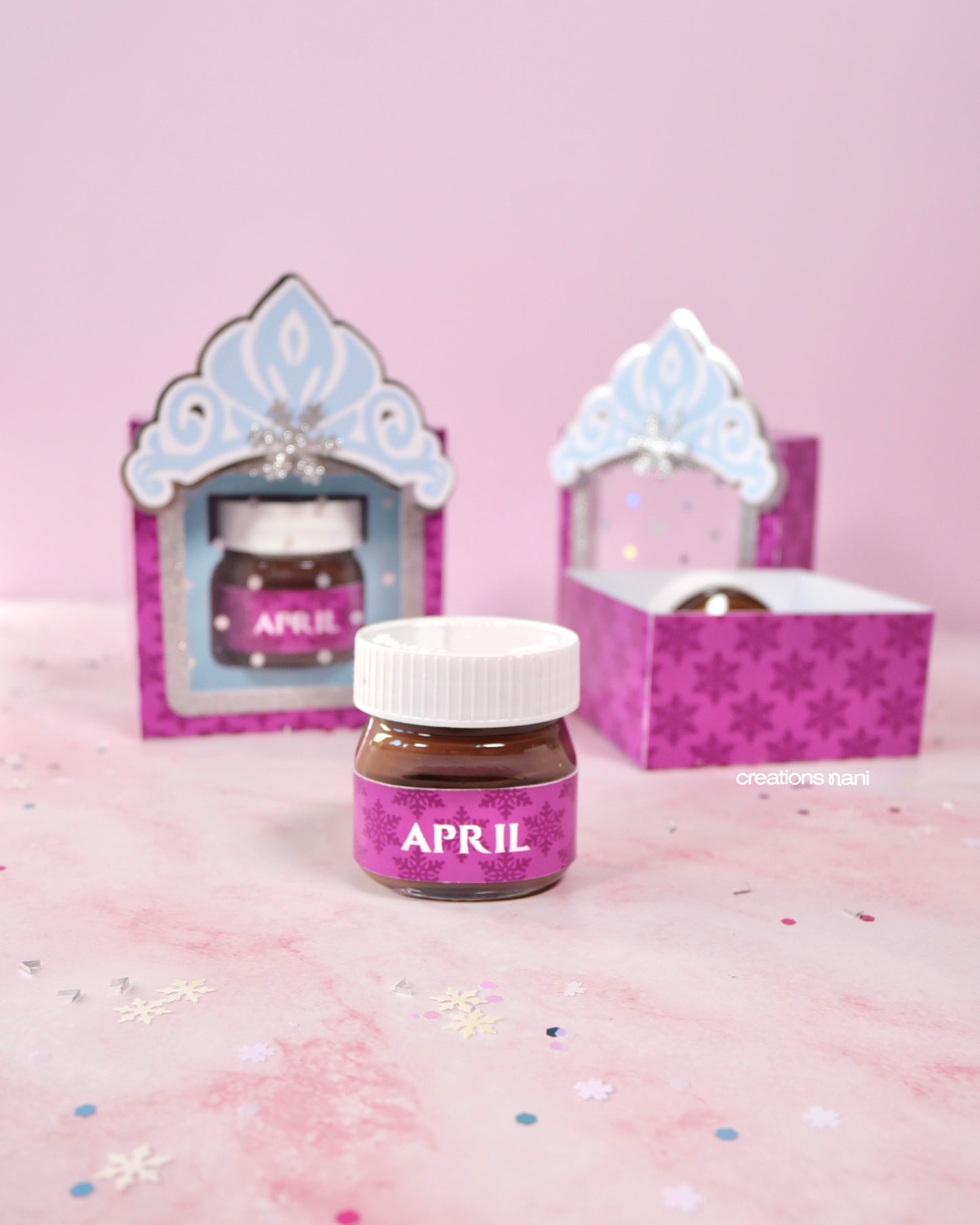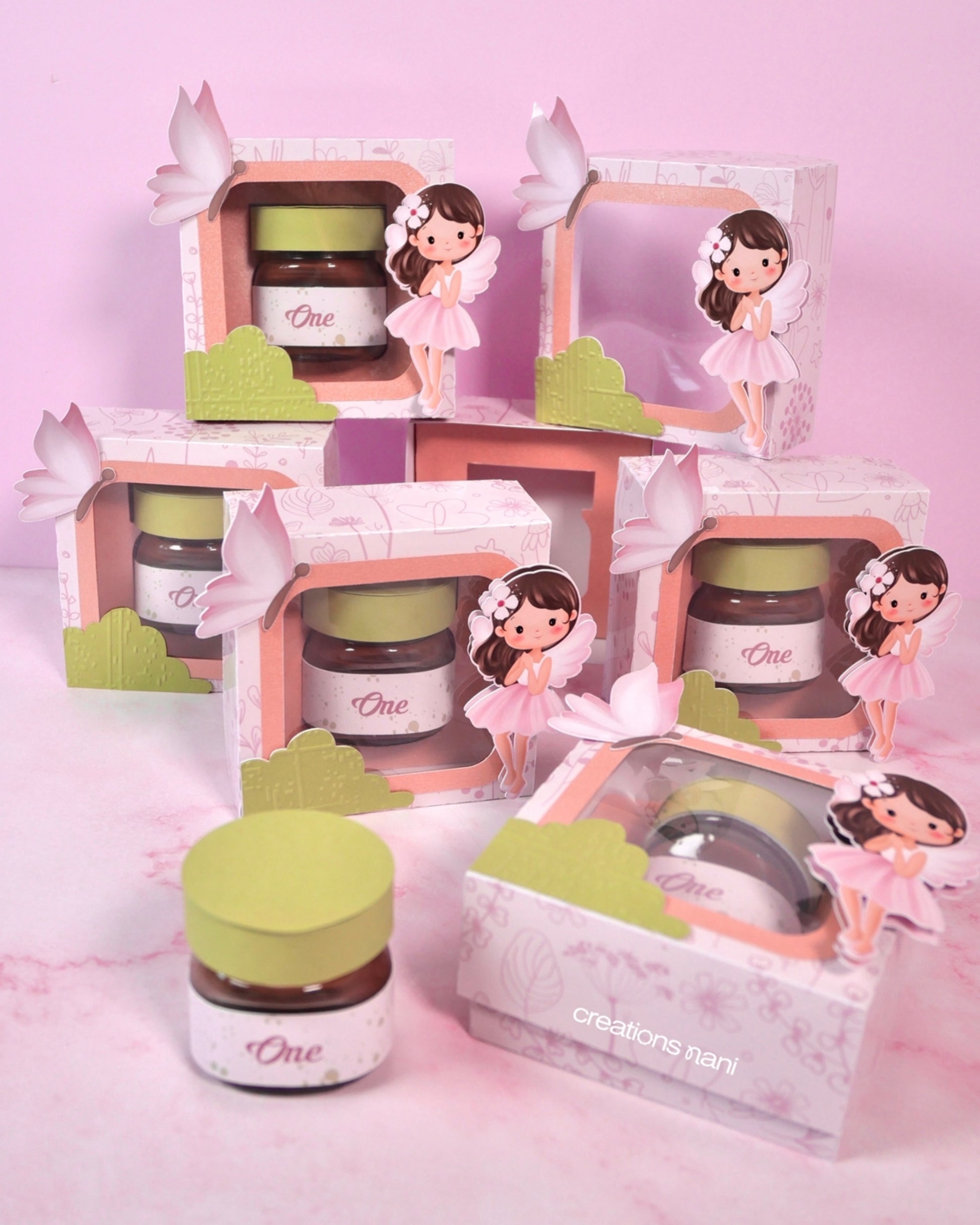 Each mini glass Nutella jar is placed inside a customized paper box, making it a cute and elegant favor. Perfect to decorate your main table, assign seats, or give as a keepsake, and guests can even reuse the box as a small storage or memory box after the event.